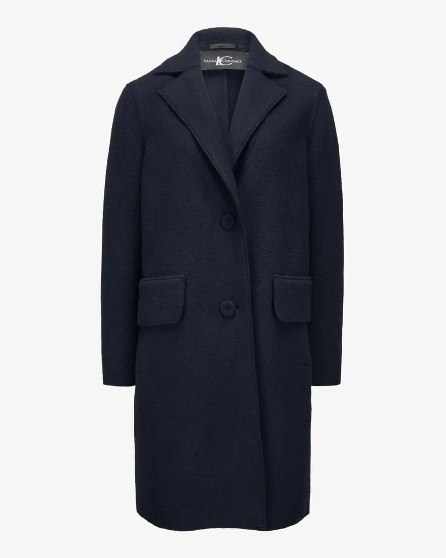 Wollmantel für Damen von Luisa Cerano in Navy. Das Modell in hochwertigerSchurwolle überzeugt mit angenehmen Tragemomenten, während die schlichteAufmachung einen zeitlosen Begleiter für elegante Übergangslooks schaffen.