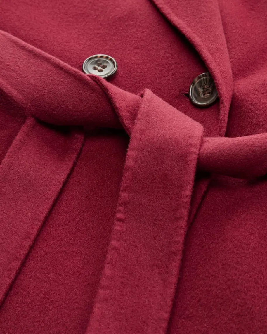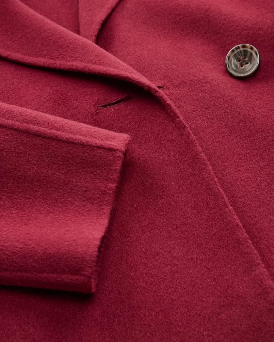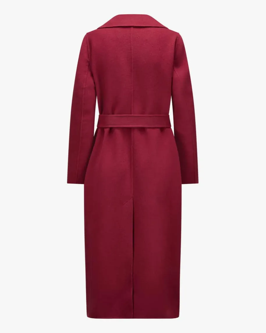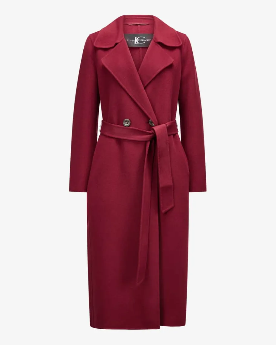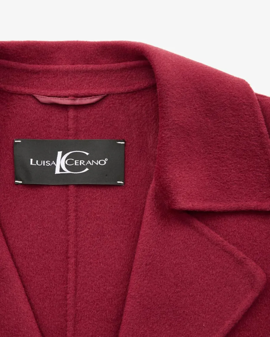 Wollmantel für Damen von Luisa Cerano in Beere. Made in Italy – Das Doubleface-Modell in hochwertigem Schurwoll-Mix überzeugt mit angenehmen Tragemomenten,während die klassische Aufmachung einen zeitlosen Begleiter für eleganteÜbergangslooks schaffen.