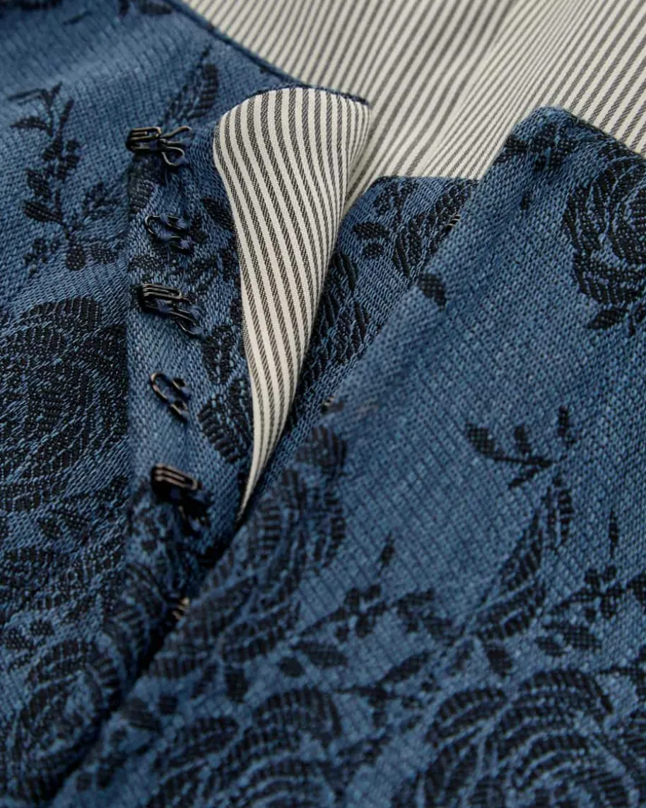 Antonia Dirndl lang mit Schürze für Damen von Gottseidank in Dunkelblau undSchwarz. Tracht mit modernem Zeitgeist – Dank des floralen Jacquard-Musters inhochwertiger Leinen-Schurwoll-Qualität begeistert das Modell mit traditionellerAufmachung. Zugleich rundet die gestiftelte Schürze mit labeltypischen,austauschbaren Schürzenbändern den Look gekonnt ab.