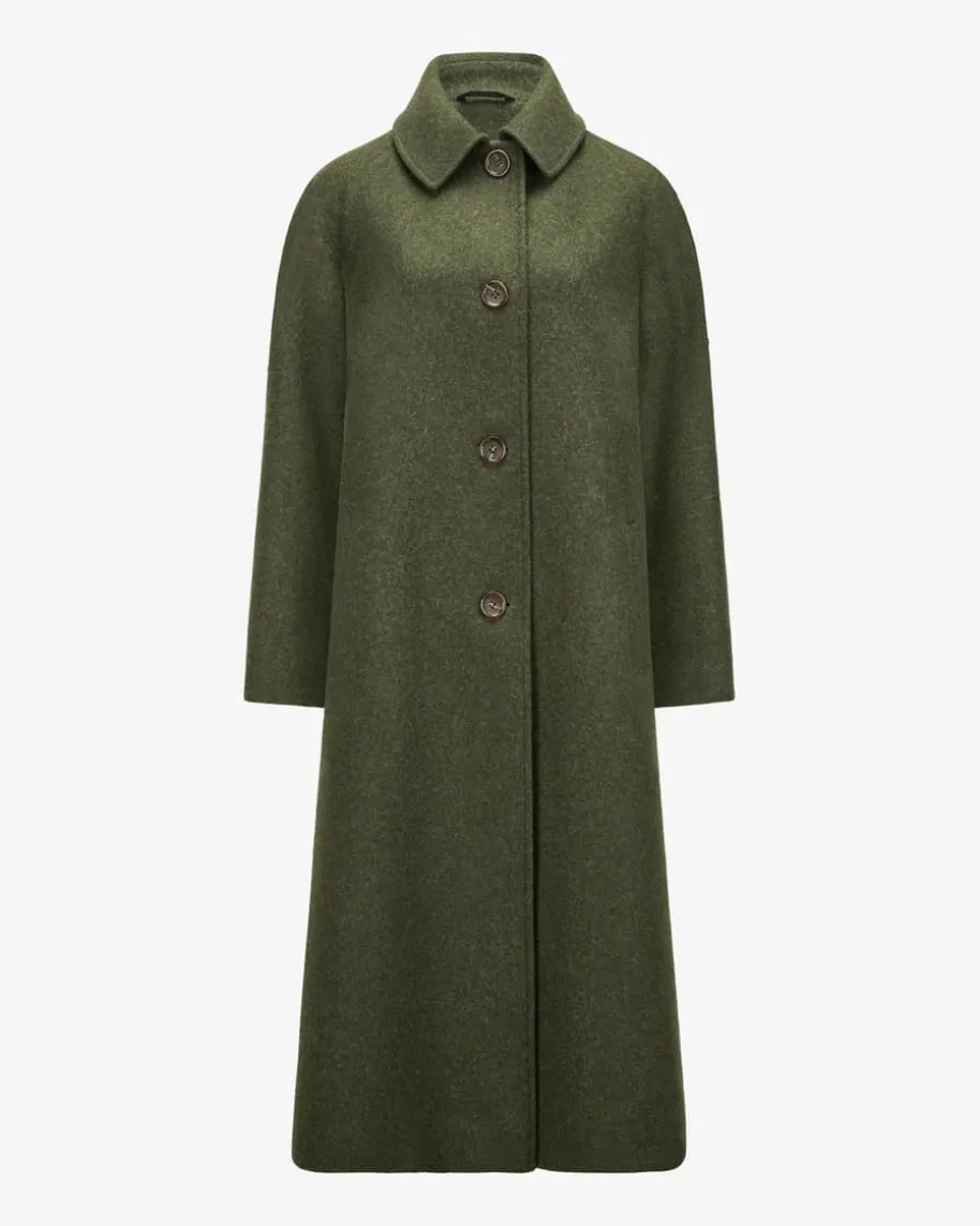 Wollmantel für Damen von Cinzia Rocca in Oliv. Seit den 1980er-Jahren stehtCinzia Roccas Damenmode für Urban Couture Luxus. Dieses exklusive Modell aus derLODENFREY Kollaboration punktet mit hochwertiger Loden-Qualität, während diegerade Silhouette mit Raglanärmeln den klassischen Look zeitlos-elegant in Szenesetzt.