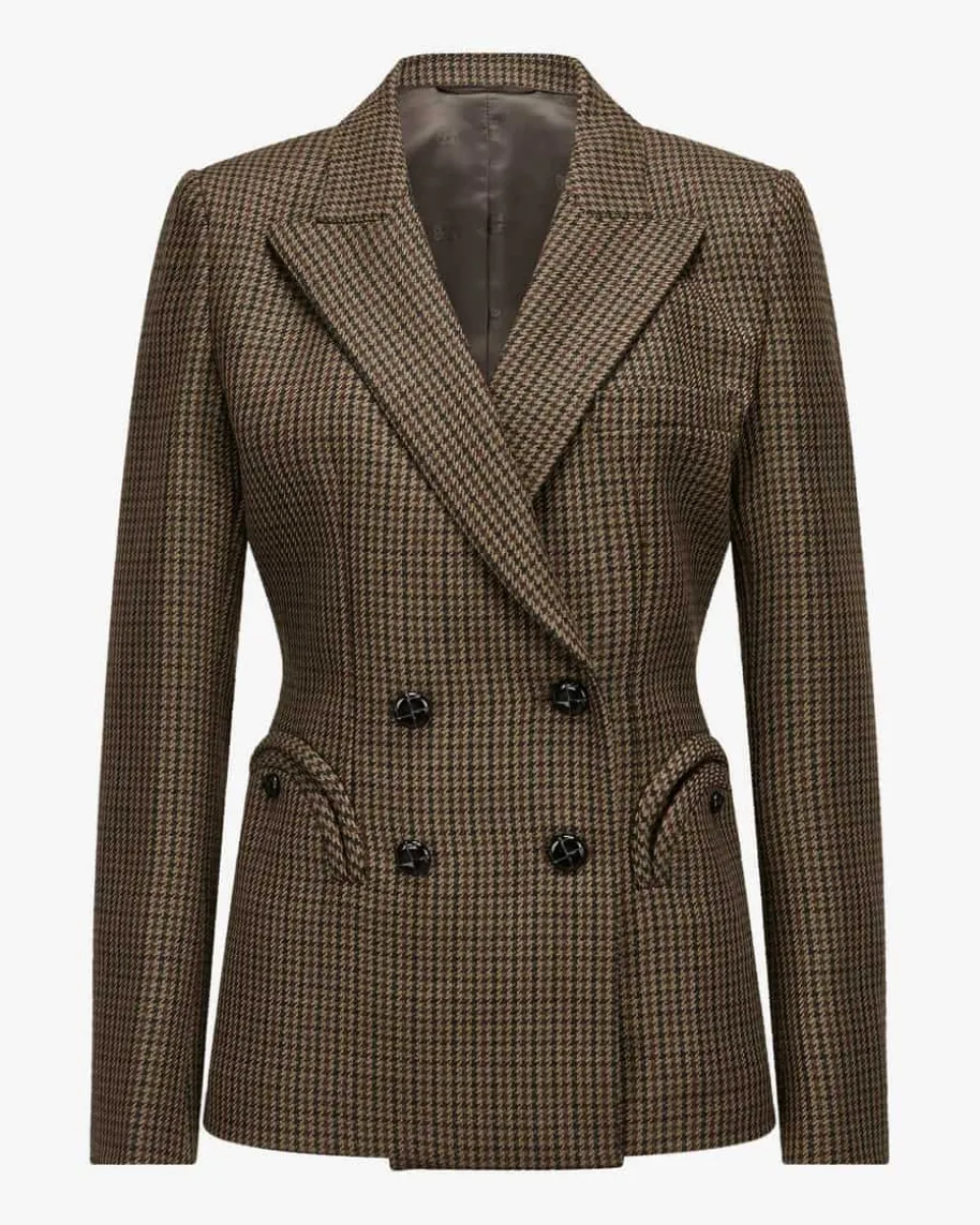 Zemi Charmer Doppelreiher-Blazer für Damen von Blazé Milano in Braun, Beige undSchwarz. Die italienische Marke steht für exzellente Herren- und Damenblazer –feinste Schneiderkunst aus Apulien mit modernem Touch. Dank der doppelreihigenOptik punktet das taillierte Modell als stilsicherer Begleiter, welcher durchklassische Details gekonnt in Szene gesetzt wird. Zusätzlich kreieren dielabeltypisch abgerundeten Taschen und das Hahnentritt-Muster einen modischenHingucker im angesagten Heritage-Look.